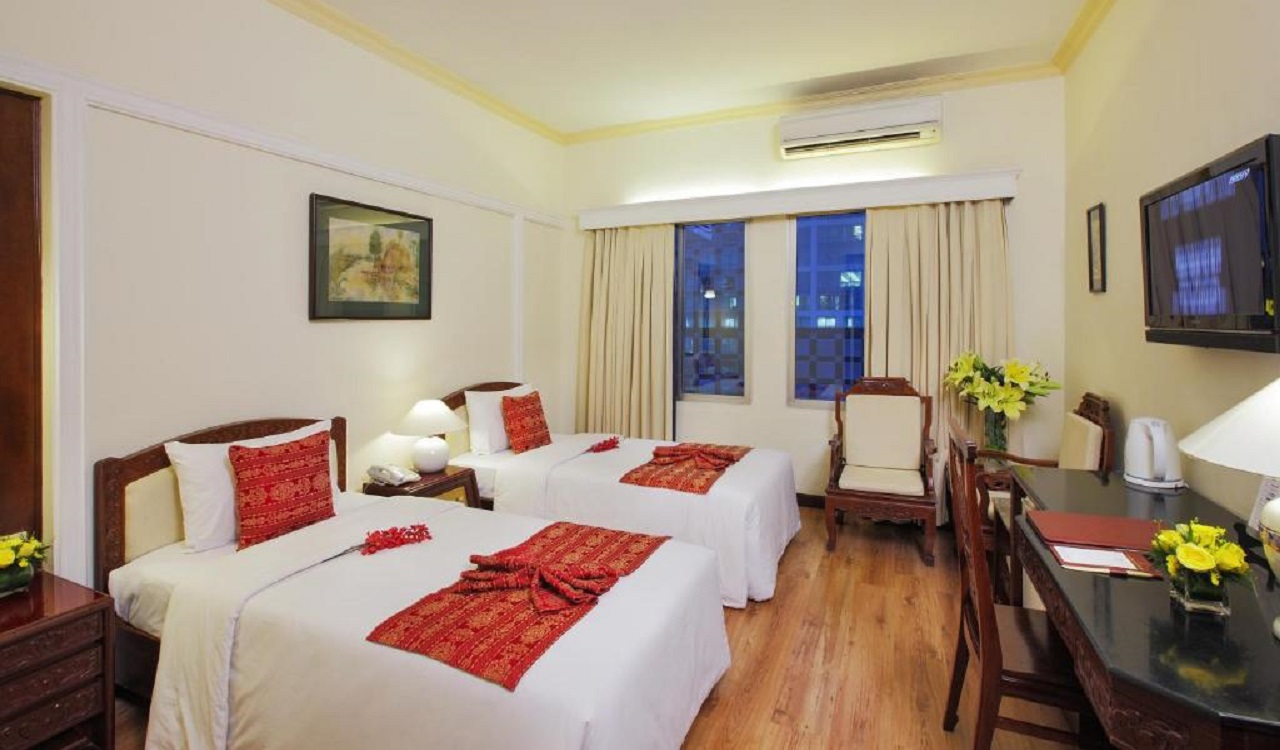 A great location for business or sightseeing, this small hotel provides personal service in this bustling and exciting city near the beautiful Municipal Theater built in 1897, City Zoo, museums, and the Ben Thanh market. Royal Hotel Saigon is a short stroll to the Saigon River where a sunset cruise brings you to the Binh Quoi Tourist Village for a glimpse into the past as well as a cultural show. Hotel rooms are comfortable with stylish wood furniture. If you have a birthday during your stay, you may get a bouquet of roses. For a sweet treat, stop by Fanny’s ice cream around the corner from the hotel. Royal Hotel Saigon assures maximum pleasure, convenience, and unforgettable memories.