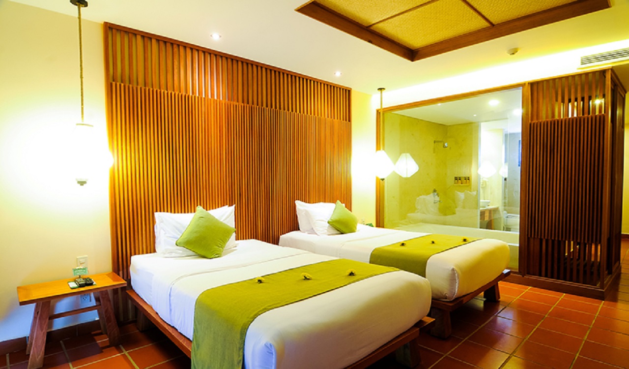 Feel the nature and unique architecture Nothing would be better than a day of enjoying the sun on your face, sounds of the surf and the sand beneath your toes as you stroll along sandy beaches with your loved ones. Every corner in Palm Garden Resort has its own characteristic, from the beautiful tropical garden and wooden bridge to where the palm trees are lined up. What we love the most is the green grass that surrounds the pool and stretches out to the beach. You will feel completely immersed in nature once you set your bare feet on the grass. The softness of the grass, the melodic rhythms of the waves and the tender caresses of the wind will take one’s breath away. The beauty of Cham Islands can be spotted from afar behind the fishing boats and is amazingly picturesque at dawn. Our nice resort in Hoi An is a tranquil retreat offering the unique architecture – a touch of the traditional architecture and the modern facilities.