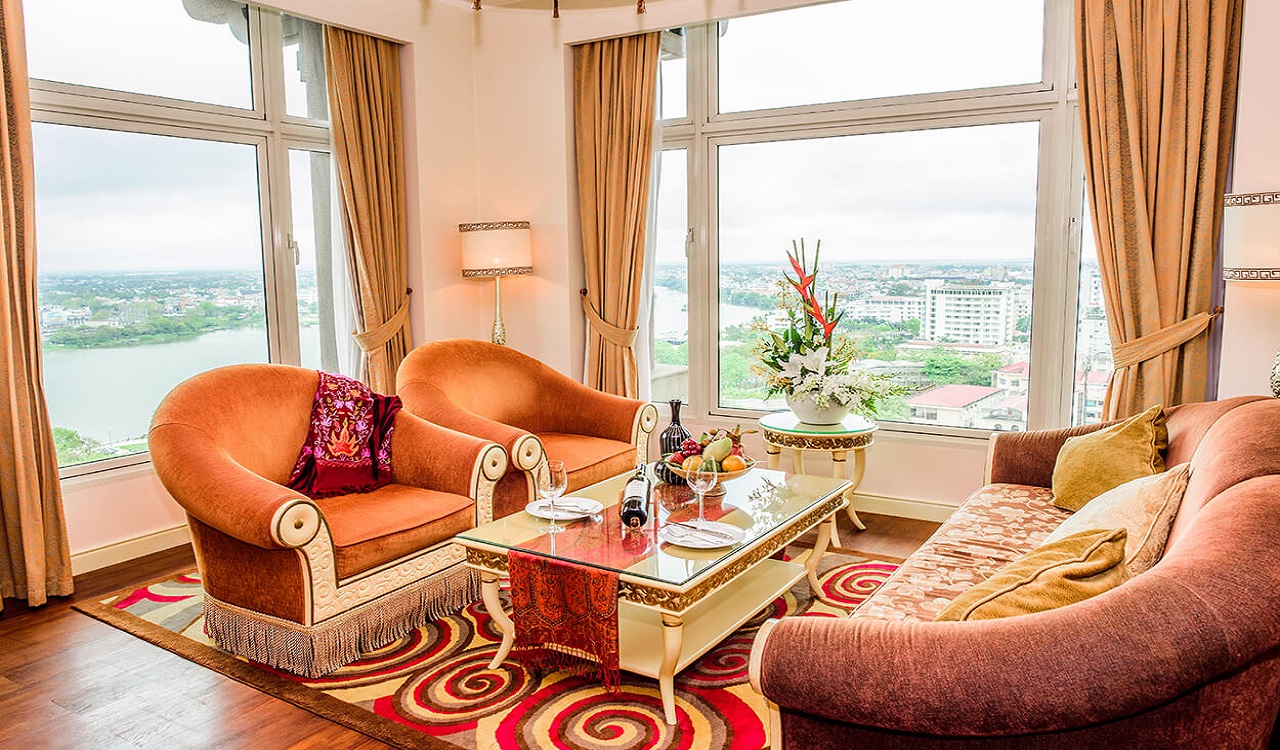 Imperial Hotel is the first five-star hotel in Hue, located on Hung Vuong boulevard in the heart of the city, abreast the Perfume river and only two-minute walk to Truong Tien bridge. It is in very close proximity to well-known tourist destinations of the world heritage city. The hotel itself is a unique masterpiece in terms of high-rise architecture but bears the impression of the architectural schools of Eastern Asia, and of the Imperial City of Hue.
